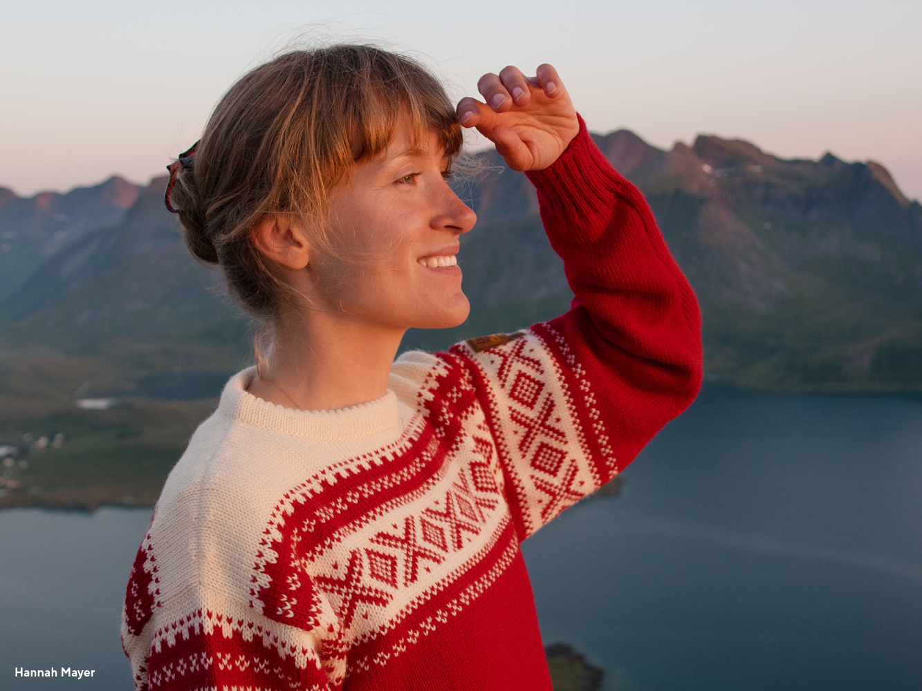 My favourite region to experience the midnight sun are the iconic Lofoten Islands in Northern Norway, because of the natural beauty and fantastic hiking opportunities they offer. These islands consist largely of sharp mountains that are rising straight from the ocean and are picturesque in any season and weather. However, during a sunny summer night their beauty is almost unparalleled, as the scenery is bursting with colours: Ragged peaks are glowing in fiery shades of orange, red and purple; The sky turns into a pastel colour painting; The ocean kisses the shore in bright turquoise hues; The fauna exudes lusciousness in every shade of green imaginable. It is intoxicatingly beautiful.