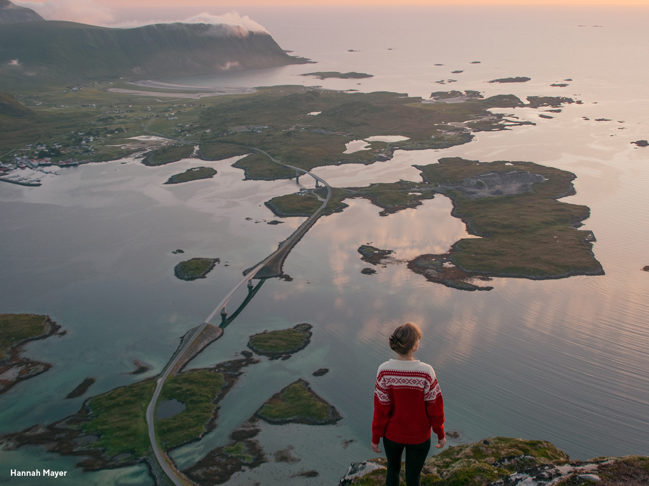 Stornappstinden is a challenging hike, but it's one of my all-time favourites. After countless steep switchbacks, you reach the summit, which sits at 740m and where you'll have incredible 360° views of the surrounding peaks and ocean. When I was there on my last night on Lofoten this summer, I had the mountain all to myself.