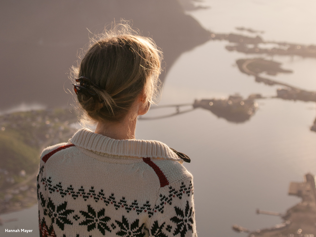 If you're seeking solitude to clear your mind and connect to the landscape around you more deeply, I recommend going on hikes that are less well known. An easy and rewarding hike I love is Volandstinden, which has an elevation gain of 457m. Once you reach the summit, make sure you keep hiking across a small yet steep peak, where you'll get an unmissable view of the Fredvang bridges.
