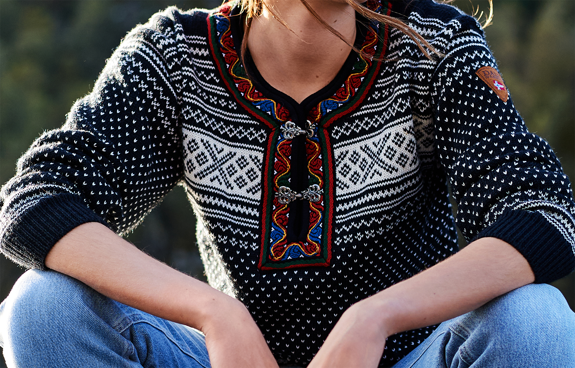 Decorative ribbons were originally used on traditional Norwegian folk costumes known as bunad. Thus, they are strongly rooted in Norwegian tradition and culture. The ribbons on our Setesdal sweater and jackets carries the pattern from one of our most popular folk costumes, the Setesdal bunad.